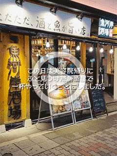 【遅番スタッフU】魚河岸酒場 スタッフ 2025.12.17 ↑↑クリックして動画をご覧下さい♪↑↑ 遅番スタッフUです!! この日は美容院帰りにふと見つけた居酒屋で一杯やっていくことにしました。 海鮮系を売りにしているお店ですね。 はじめの一杯はやっぱ生かな! 刺身もおいしい! 本日のおすすめに馬刺しユッケがあったので食べてみました。 生ガキもツルっと 最後は元祖ふぐ串カツをいただいて帰りました。